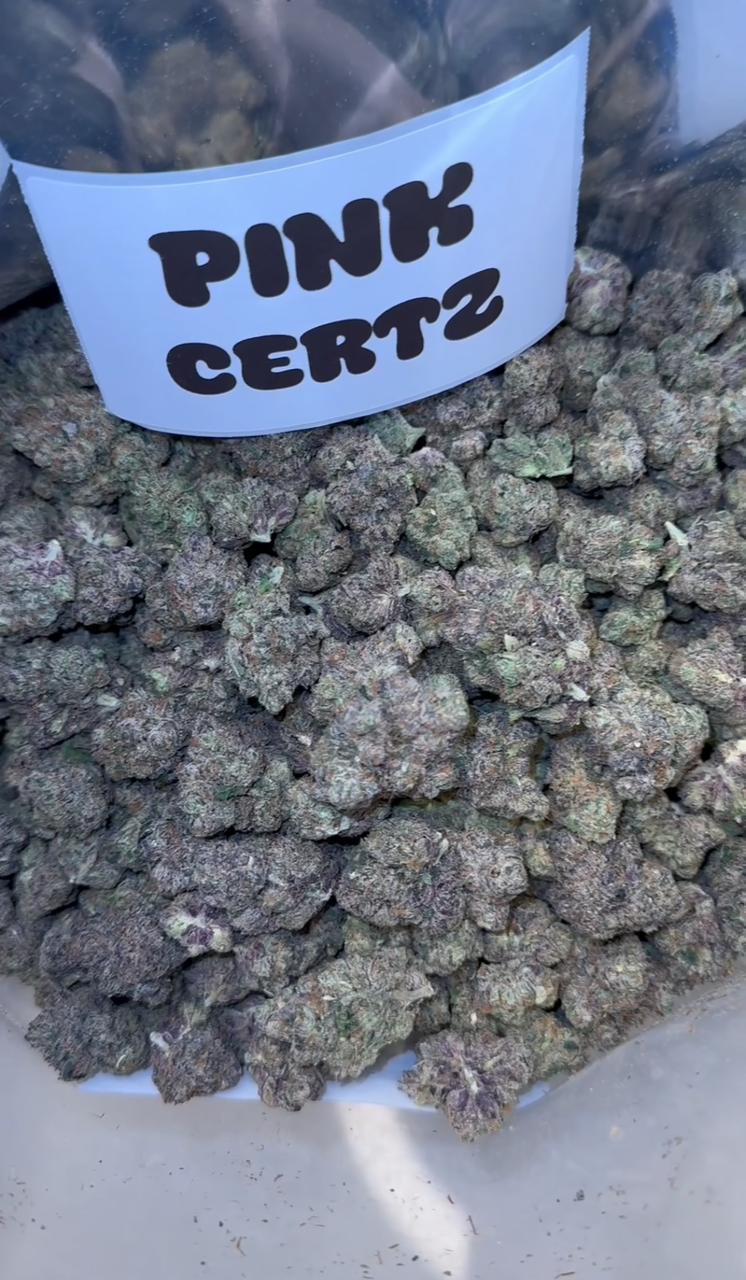 Pink Certz is a weed strain bred by Compound Genetics. It’s a cross of The Menthol and Grape Gasoline. A Pink Certz from Sense SF won the Transbay Challenge cannabis contest in 2022 in San Francisco. Pink Certz smells like minty grapes and fuel. The strain has a hybrid effect.